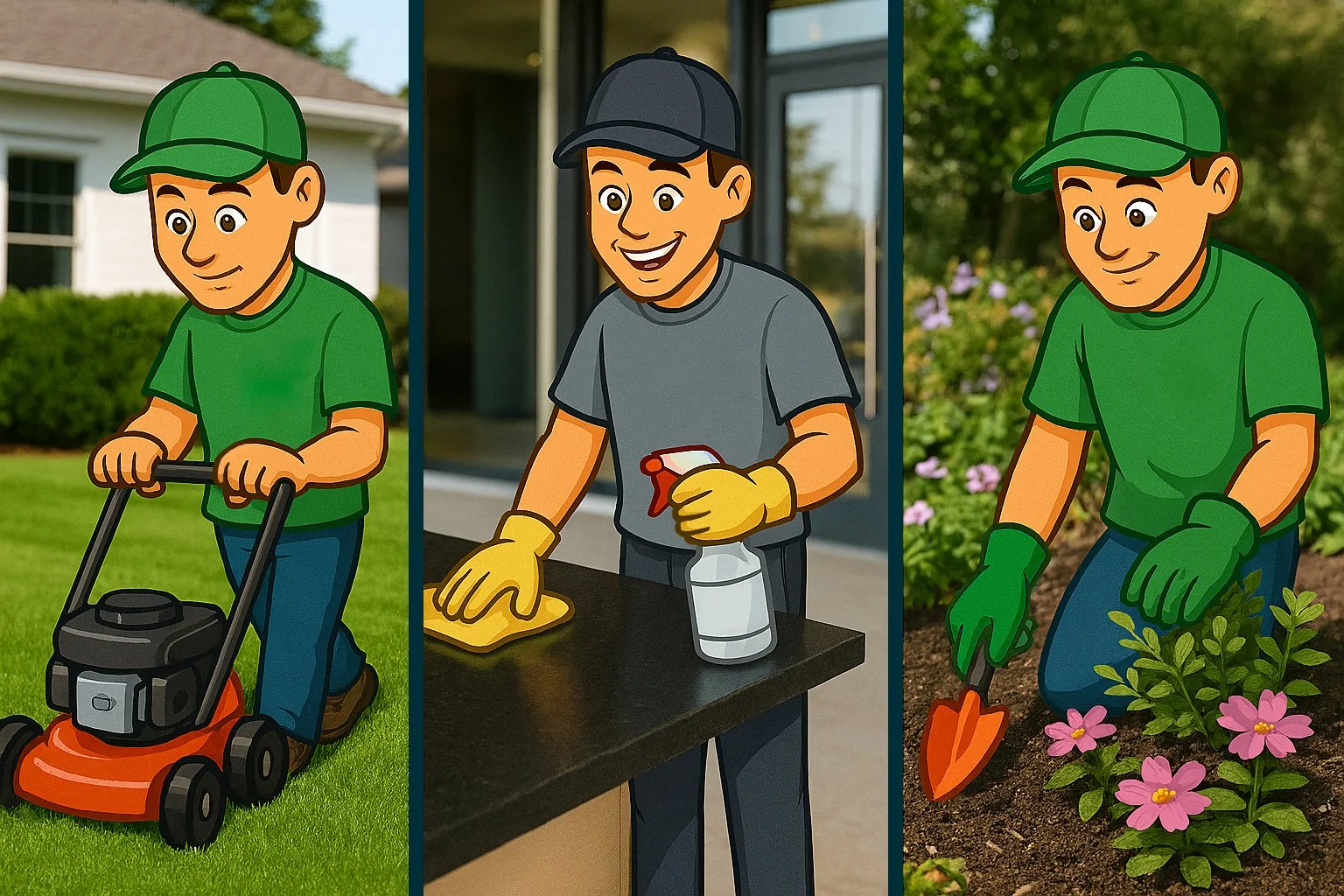Our services currently focus on commercial & residential lawn mowing and gardening only. We don’t currently offer commercial cleaning services yet, and residential cleaning will not be part of our services in the future.